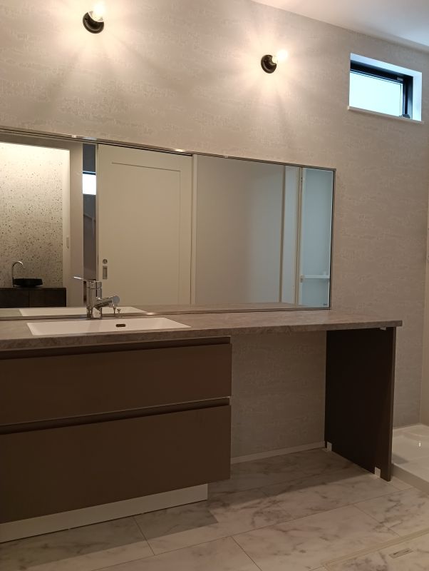 同じ幅の鏡も設置されているので、スツールに座ってゆっくりとお化粧やスキンケアが出来ますね!
